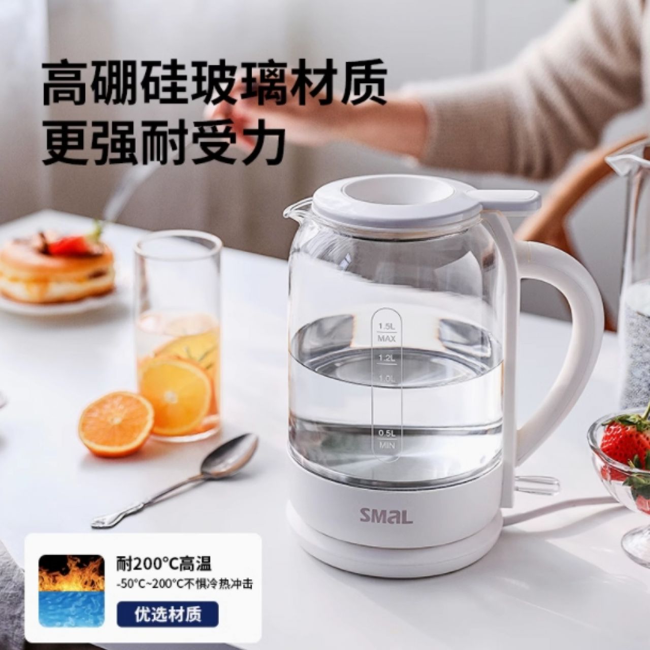 • 西摩办公室电热水壶自动断电家用便携式开水茶壶高硼硅玻璃烧水壶