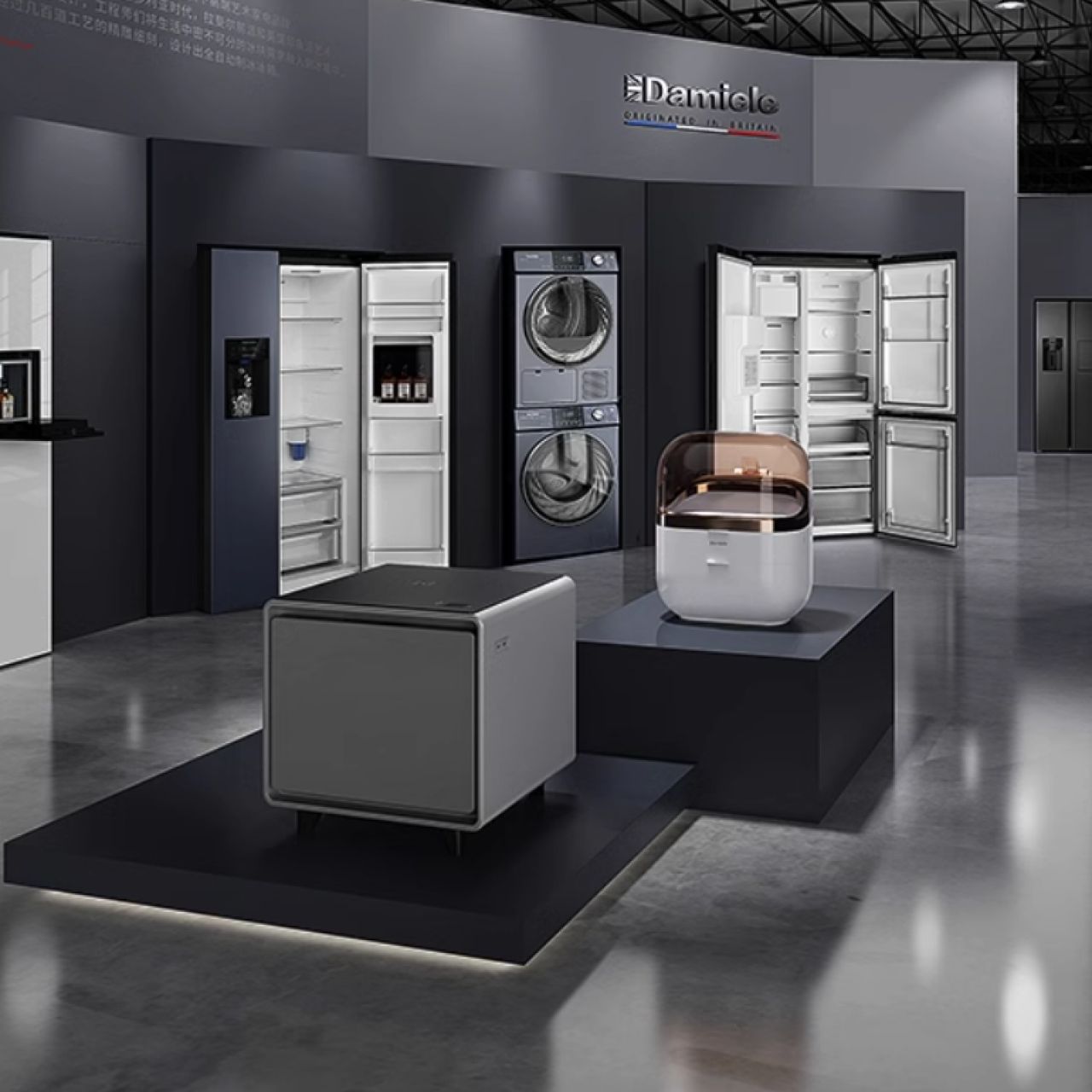 • 达米尼573L白色玻璃双开门自动制冰冰箱一体机超薄家用智能大容量